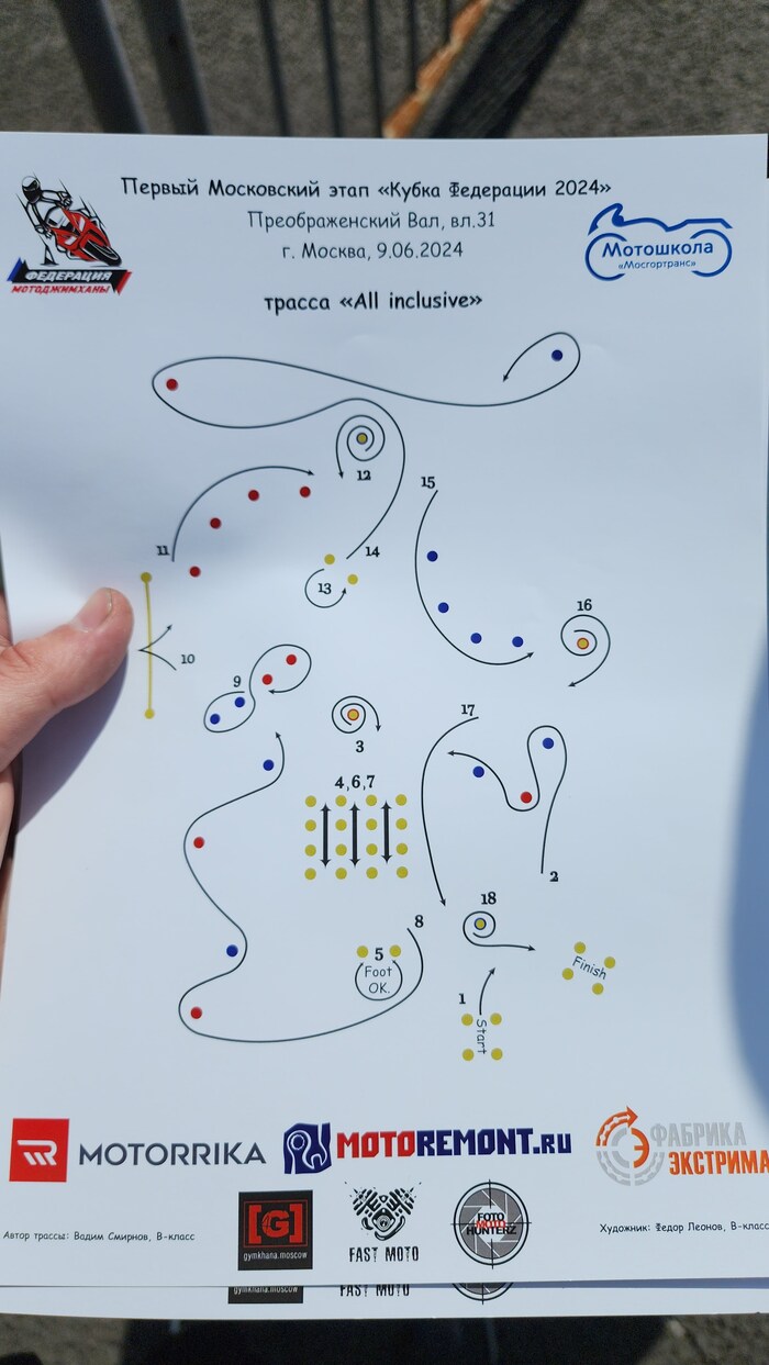 Постараюсь быть краток. Есть мотоджимхана, это передвижение мотоциклов на скорость в ограниченном пространстве (я писал). Есть федерация мотоджимханы, федеральный проект для спортсменов, которые занимаются этим профессионально, но в общем-то для всех желающих (и про них писал). А есть Л73 - это площадка учебной джимханы в Москве для развития своих навыков. И вчера там были соревнования, мы с женой там были, а я - участвовал.