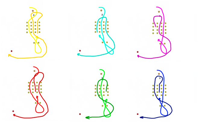 Вот - три коридора из жёлтых конусов. На схеме обозначены как 4,6 и 7. Это значит, что нужно по разу проехать каждый из коридоров, а вот порядок определяет сам водитель. Хотите себя почувствовать таким водителем?) Тогда вопрос вам:
