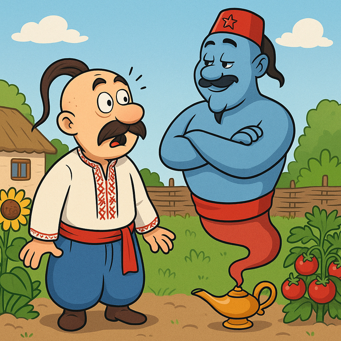 Нашёл как-то украинец в огороде старинную лампу с едва заметной звёздочкой. Протёр — и появился загадочный джинн с хитрым прищуром и лёгким акцентом.