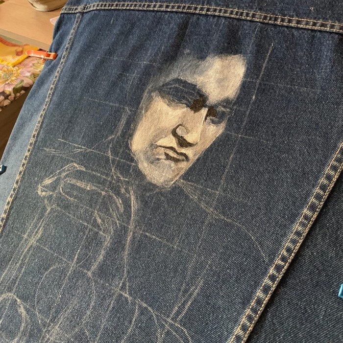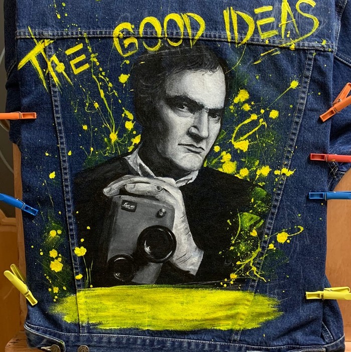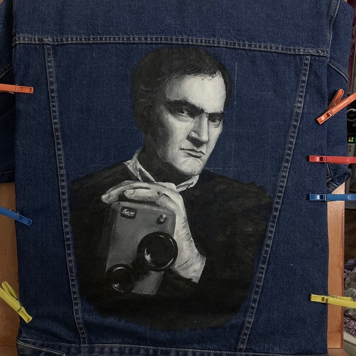 Портрет Тарантино на джинсовке. Роспись акрилом