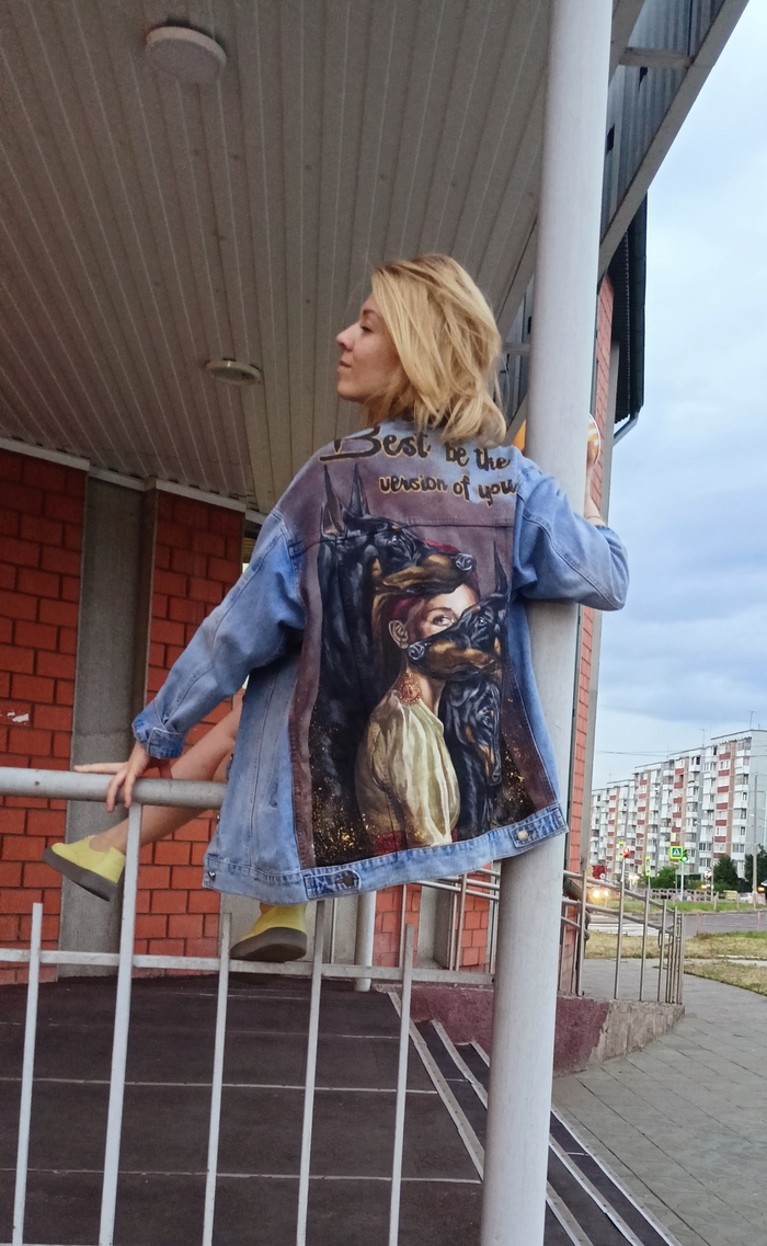 Моя куртка, сделанная для меня @Kastomart, на заказ. Очень красивая и тонкая работа. Ещё, она светится в темноте. Красота. 😍