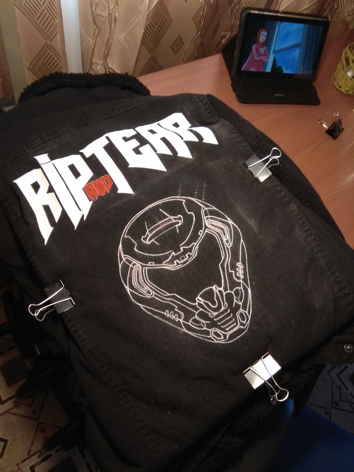 Заказ упал как снег на голову, знакомая приехала в город,попутно решила сделать сюрприз своему МЧ по возвращении домой. Обратилась с просьбой перенести оду из моих CG работ на куртку, с небольшими изменениями))))