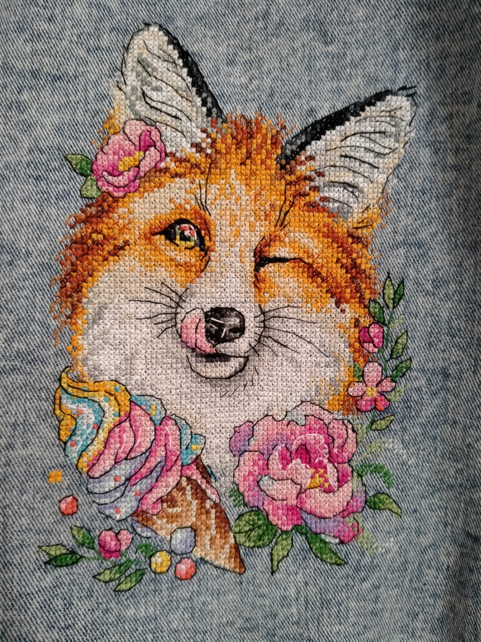 4. В конце занимаюсь прорисовкой всех деталей (тени, фактура тканей и т.д.). Сушу джинсовку в течении 24 часов и покрываю защитным лаком (рисунок становится ярче).