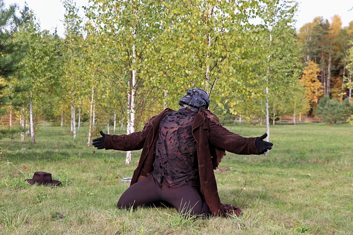 Фотки с КомикКона меня не совсем устроили, т.к. я частенько горбился, пальто закрывало ноги, а это смертеподобно для образа, т.к. сжирается и без того мой невысокий рост, да и Крипер в фильме передвигался таки образом, что пальто почти всегда оставалось сзади как плащ, обнажая его переднюю часть тела и ноги. Поэтому вооружив жену неплохим фотоаппаратом мы выбрались в местный лесок и сделали множество фоток, некоторые из которых я представлю своим дорогим читателям)