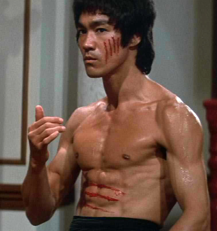 Рост Брюса Ли составлял 175 см, вес — 59 кг. Арнольд Шварценеггер считает его телосложение эталоном полного отсутствия лишнего жира в организме.