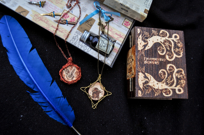 Кулоны - сотрудничество с Jenika Ai-Ren, чьи золотые лапки наплели из проволоки.