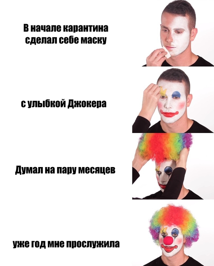 nstonic 4 года назад Моей маске год1 В начале карантина сделал себе маску с улыбкой Джокера. Думал на пару месяцев, но вот уже год мне прослужила [моё] Маска Коронавирус Джокер Ещё 0