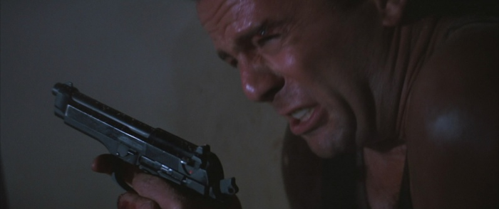 Макклейн стреляет больше пятнадцати раз, находясь под стволом. По словам режиссера, близость пистолета к уху актера вызвала потерю слуха у Уиллиса на некоторый срок.