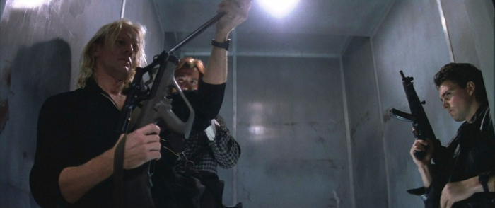 Карл собирает свой автомат в лифте, полный решимости убийть Макклейна.