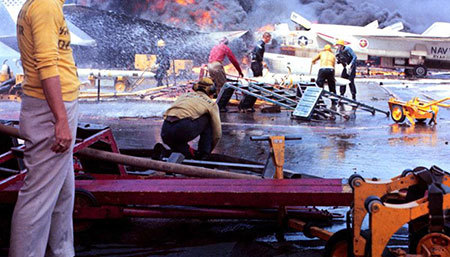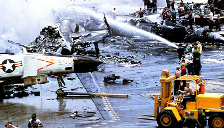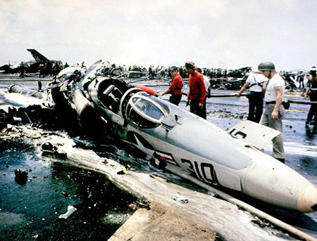 Но и тут Маккейну не везет - в одном из полетов доблестный рыцарь звездно-полосатых ВВС умудрился «размотать» истребитель, зацепившись за опору линий электропередач. И снова везение - сам не пострадал, ответственности не понес. Однако, самая интересная страница в биографии Джона Маккейна - его служба на авианосце «Форрестол». Вину за происшествие, благодаря которому авианосец надолго был выведен из строя, многие военные историки приписывают именно нашему герою. «Официально, конечно, причиной взрыва назвали техническую неисправность», - поясняет военный историк Борис Литвинов.