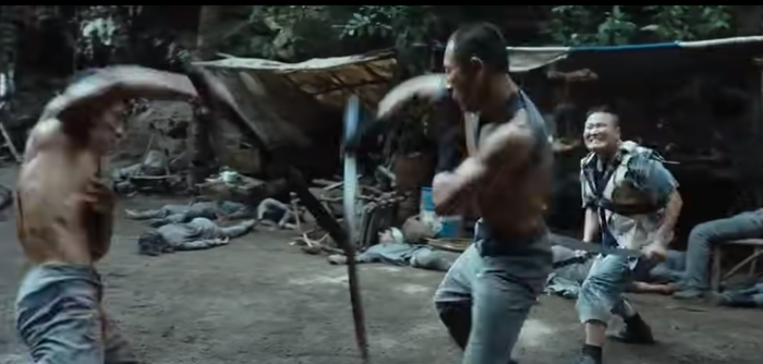 С 1 минуты 51 секунды очень хорошо показано, что два коротких клинка, совсем не обязательно лучше одного длинного. Мастер хорошо контролирует дистанцию, не давая противнику подойти на расстояние, на котором он сможет использовать оба своих мачете.