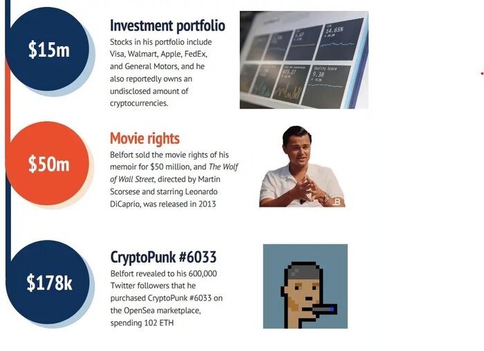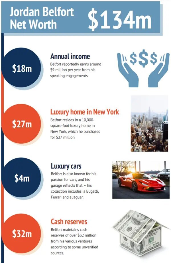 В частности, в результате вложений в различные высокодоходные и инвестиционные продукты Белфорт накопил 134 миллиона долларов США по состоянию на март 2023 года, согласно данным Business 2 Community.
