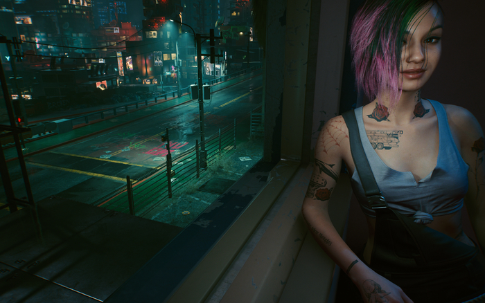 Думаю, многие как и я были расстроены тем, что Джуди отправили играть за другую команду. Скорее всего разработчики сделали это для усиления киберпанковской атмосферы (анекдот про синюю занавеску :)) . Hi tech, low life, безнадёга, щепка тебя перезаписывает и скоро обнулит. Вот и девчонка, которая тебе нравится, предпочитает других девчонок. В итоге проходишь финал, слышишь - полгода максимум, потом склеишь ласты. И думаешь - нафига это всё? Джонни, забирай тушку. Всё, ачивка "умеренность"