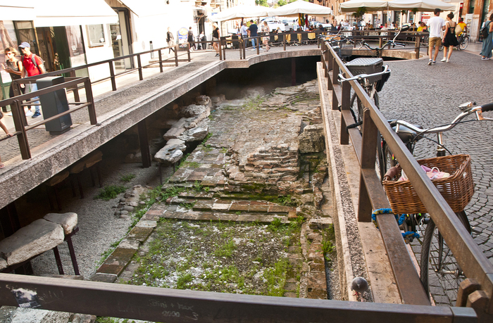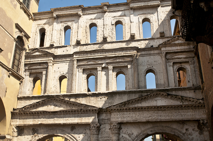 Несмотря на солидный возраст, они хорошо сохранились, в том числе можно увидеть древние надписи на латыни, сделанные в III веке до н.э., в том числе первоначальное название города: COLONIA VERONA AUGUSTA.