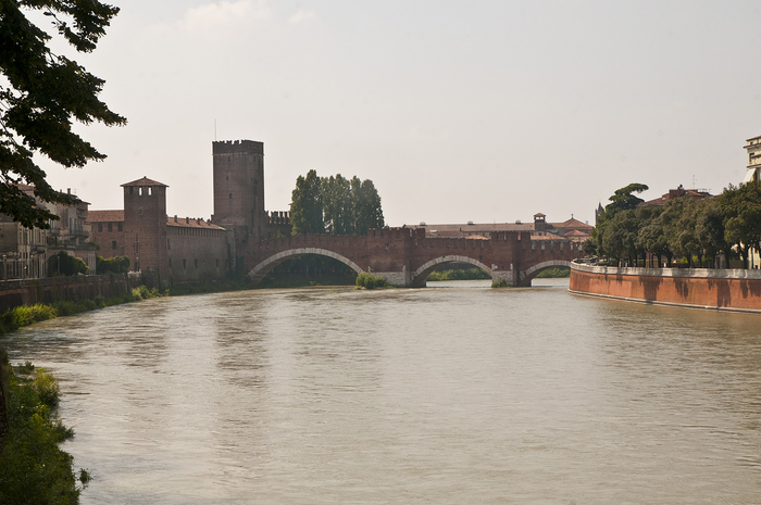 Расположенный на берегу реки замок Кастельвеккьо представляет внушительное оборонительное сооружение, построенное в средневековье. Строительство замка началось в период правления семейства делла Скала, главной его задачей являлась защита Вероны от наступления врагов с воды. Цель была достигнута и в XIV веке небольшой населенный пункт превратился в неприступный город-крепость. В память об основателе замка в одном из внутренних двориков Кастельвеккью была установлена скульптура Кан Гранде делла Скала.