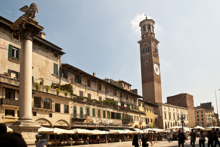 Долгое время площадь Синьории была политическим центром Вероны: здесь располагались лоджия городского совета, дворец правосудия и дворец капитанов, являющиеся главными органами городского управления.