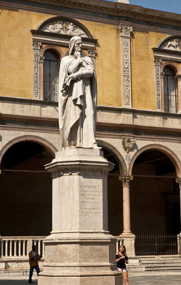 Старинная площадь Синьории, сохранившая атмосферу средневековья благодаря своему архитектурному ансамблю, привлекает многочисленных туристов расположенным в центральной части памятником Данте Алигьери.