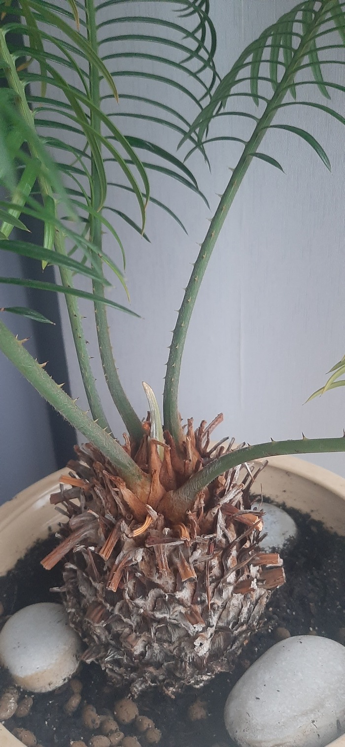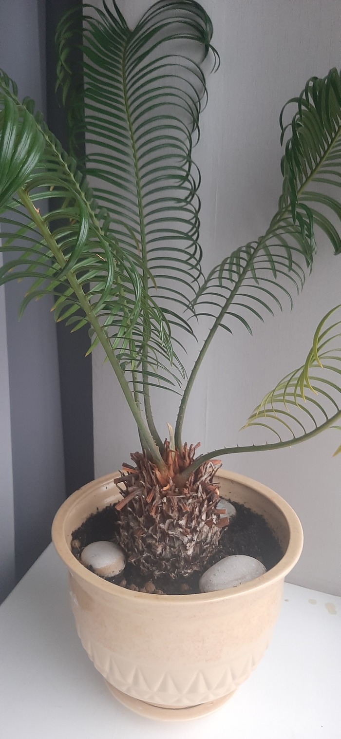 И наконец, самая большая моя радость! Цикас, мой привередливый парень, все-таки решил меня осчастливить. Еще вчера во время полива ничего не предвещало грядущей радости, а уже сегодня утром на макушке "ананасика" обнаружен намёк на листик. Затаила дыхание...