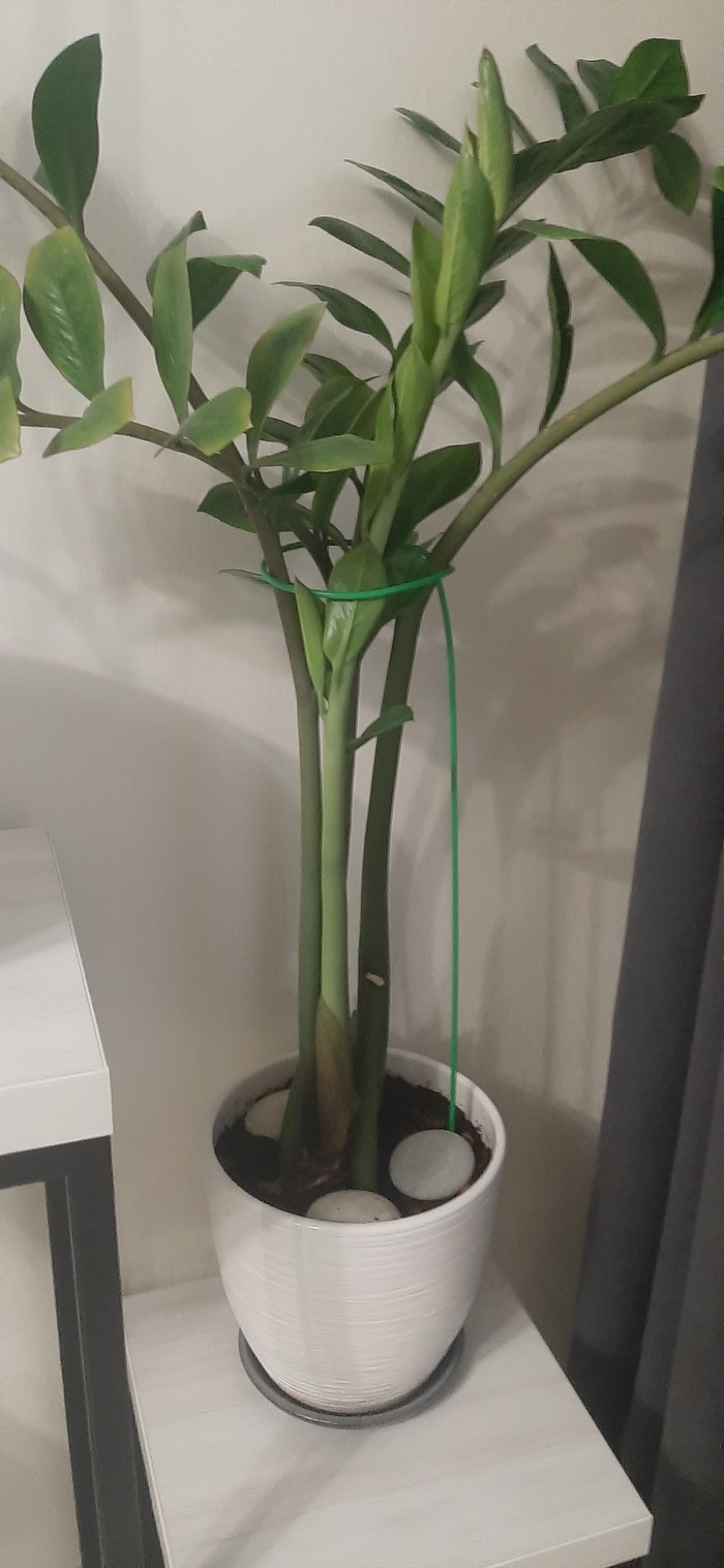 У моего неторопливого замиокулькаса с конца лета растёт большой лист. Растёт очень медленно, хотя коллега на работе утверждает, что замики - шустрые ребята.