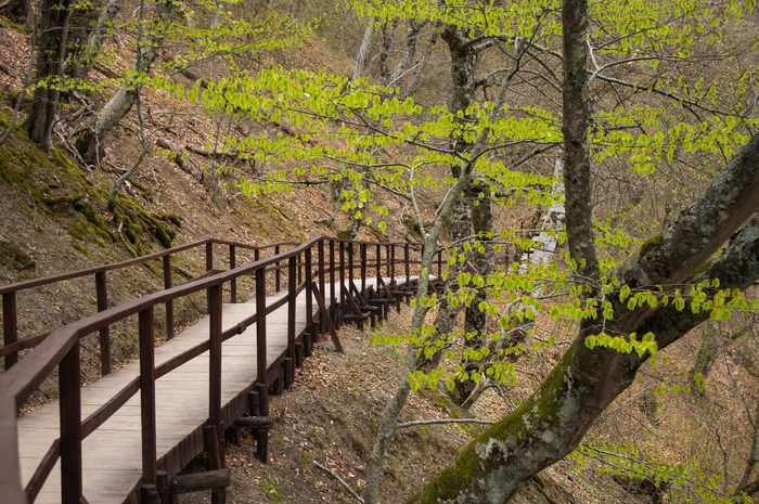 Очень известный севастопольцам водопад. Находится в Байдарской долине, возле села Передового. Можно аккуратно подъехать к кромке леса, а дальше по тропинке за 20-30 минут подойти к самому водопаду. Обычно, здесь все и разворачиваются назад. Но! Можно обойти водопад по тропинке справа и посмотреть каскады на реке Кобалар-Су, а также сезонный водопад "Рыжий", находящийся в каменной арке в верховьях реки. Набор высоты: 150 метров. Расстояние: 4 км.