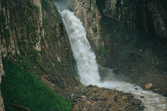 Обратите внимание на водопадик. Их там много. Кто-то живописно стал в укромном месте с ярко красной палаткой [https://www.google.com/maps?q=loc%3A43.4345932%2C42.538269]