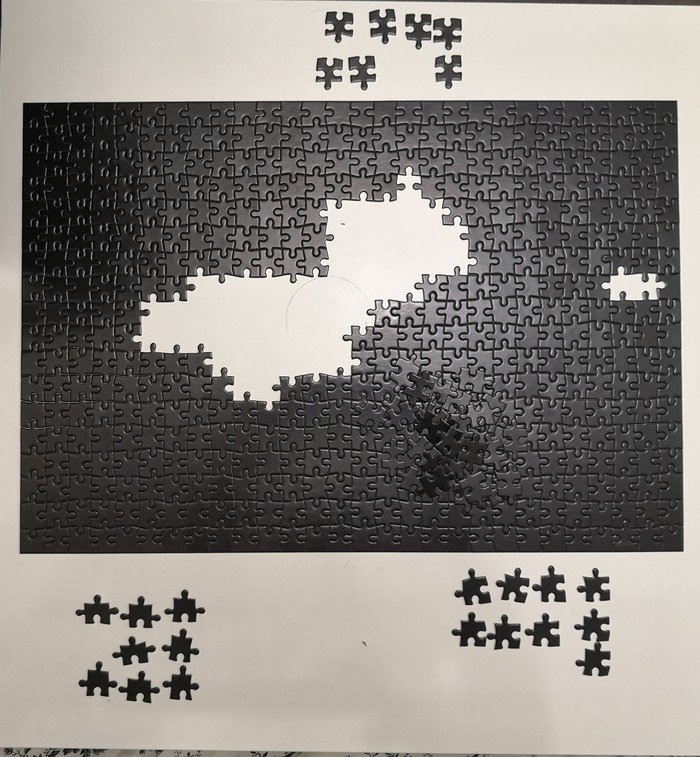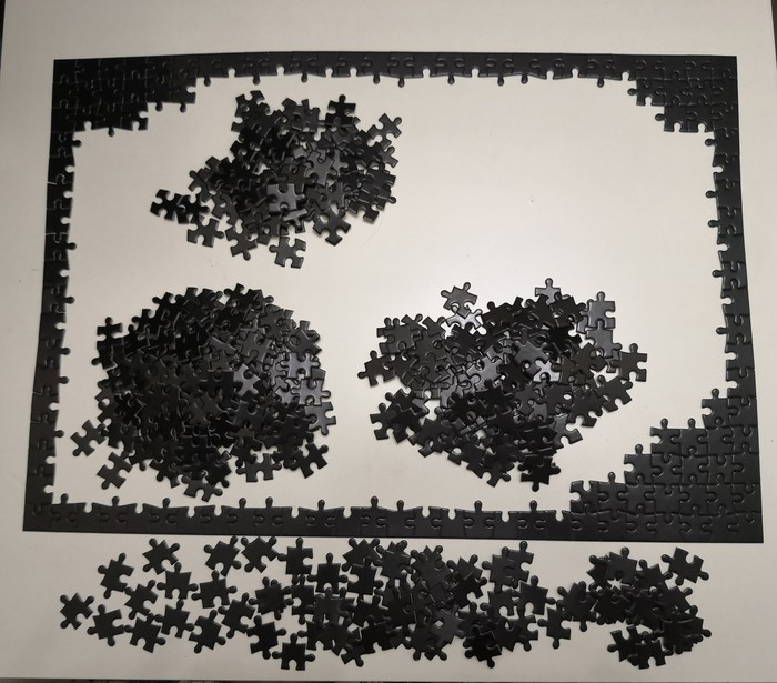 Схему собранного пазла я изначально не видела, но в комментариях писали, что она на обороте коробки. В общем, я решила на неё даже не смотреть. Решила по хардкору. Иначе зачем это всё.