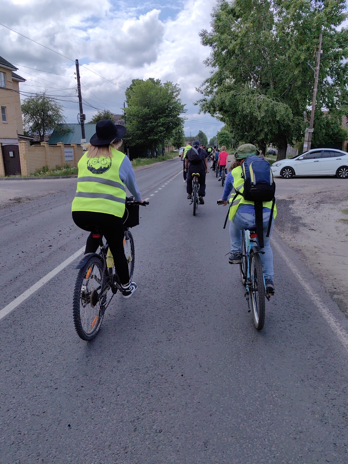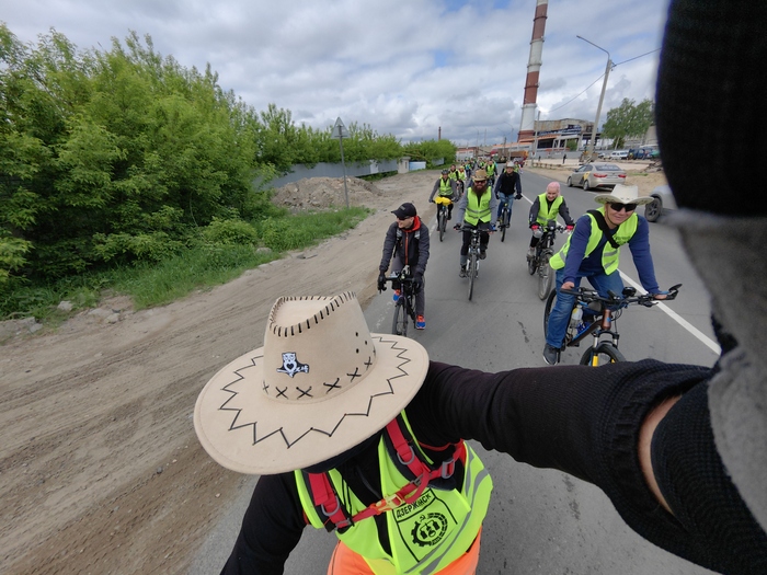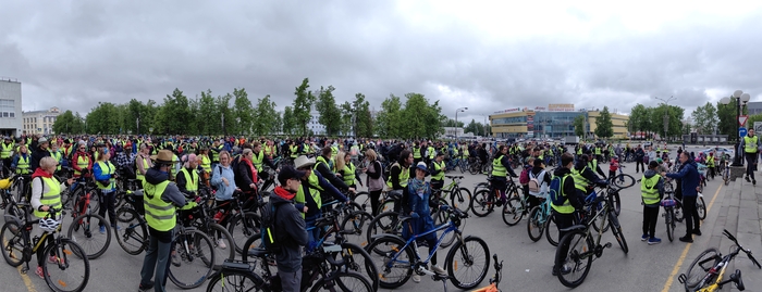 Наше открытие сезона, юбилейное. Больше 1000 человек. Мэр во главе колоны(он периодически катает на велосипеде и мотоцикле)