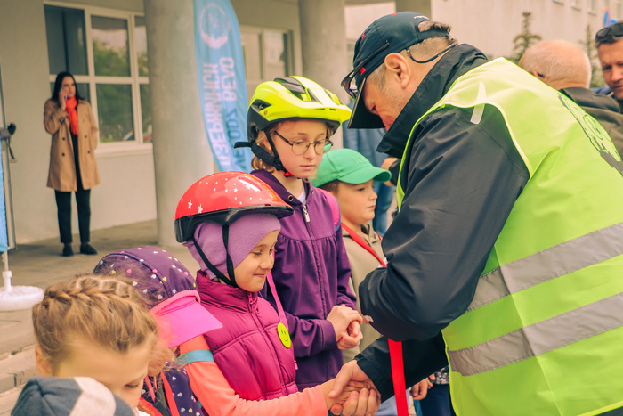Участвовали также маленькие велосипедисты, которым в самом начале мэр раздал медали, дети поехали перед первым звеном и после трех км свернулм, в место где их ждали родные, а колона дальше продолжила путь.