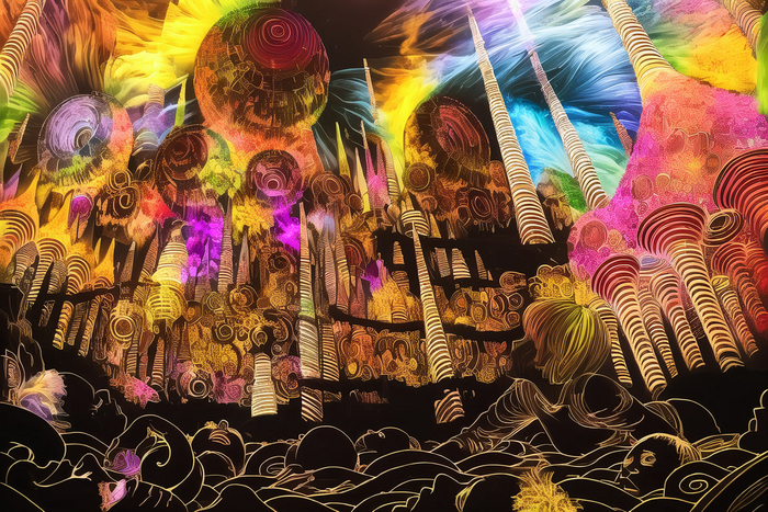 Создано с помощью ControlNet 1.1 в Stable Diffusion, как раз в процессе изучения его новых возможностей. Промпт наикратчайший: vivid colors, (cosmos:0.8)