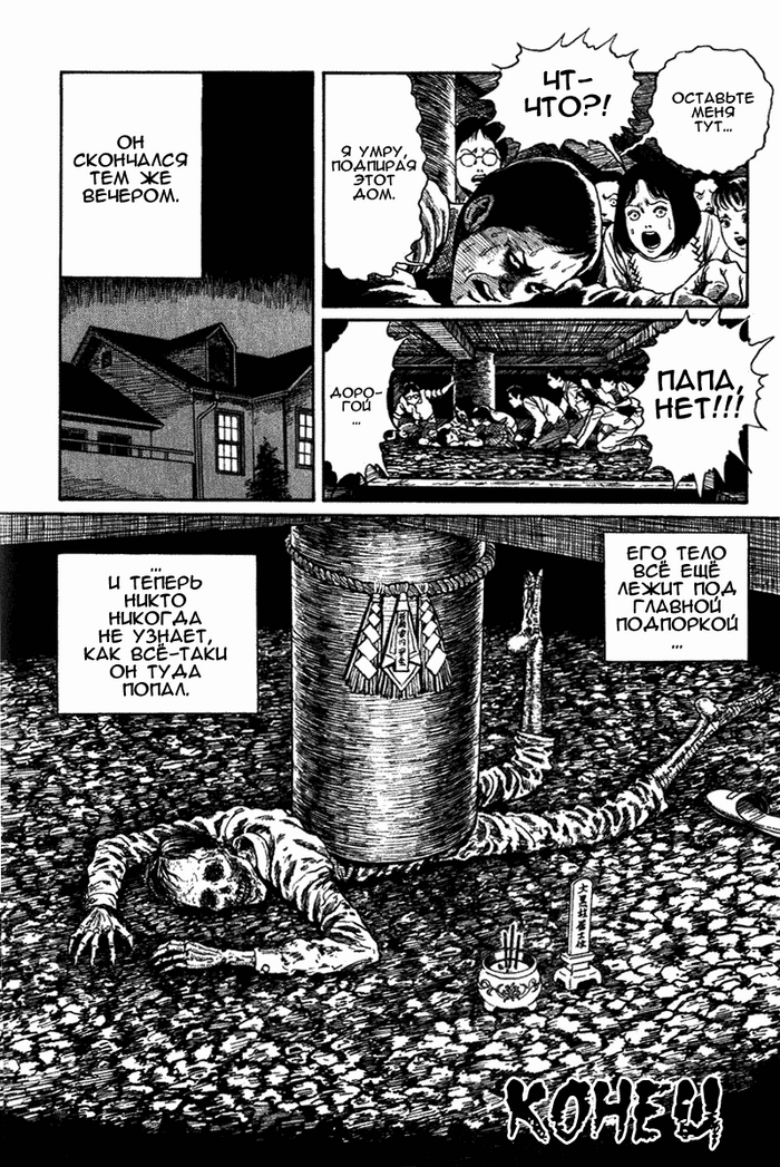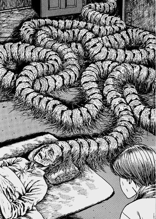 Дзюндзи Ито - король рисованных хорроров, без преувеличения. Перечитывал его несколько раз и всегда восторгался полёту фантазии этого мангаки. Большинство историй может уместиться на 20-30 страницах, но магическим образом клеймоментно впечатываются в память.