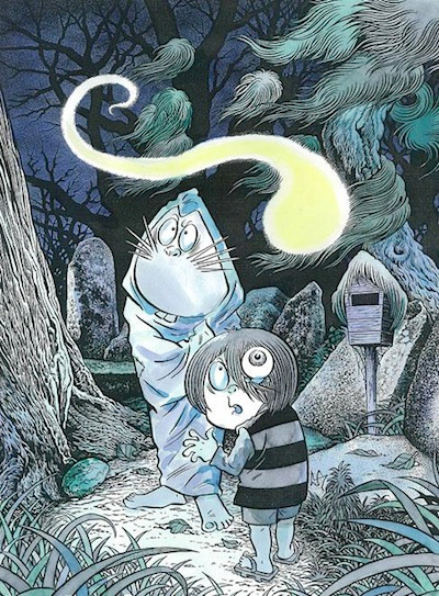 Недавнее (и долгожданное!) английское издание его самой любимой работы, "Китаро", может быть названо "возможно, самой известной японской серией манги, о которой вы никогда не слышали", и это не шутка, поскольку очаровательный маленький зомби-монстр Китаро известен в Японии почти так же хорошо, как, например, Астро Бой. В манге Китаро странствует по Японии, встречая традиционных фольклорных существ, многие из которых никогда не были описаны в письменной форме до появления манги. Таким образом, серия является, буквально, сокровищницей вымирающих призраков и монстров, которые в противном случае могли бы быть забыты. Кроме того, она полностью эпизодическая, то есть, по сути, это множество коротких историй, объединённых чудаковатым и очаровательным главным героем. Десятки других серий историй о привидениях и других сверхъестественных ужасах подражали "Китаро" и его эпизодической структуре, напоминающей короткие истории.