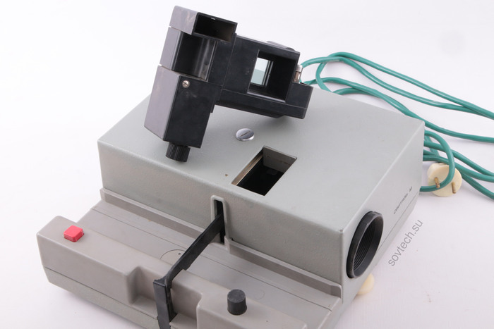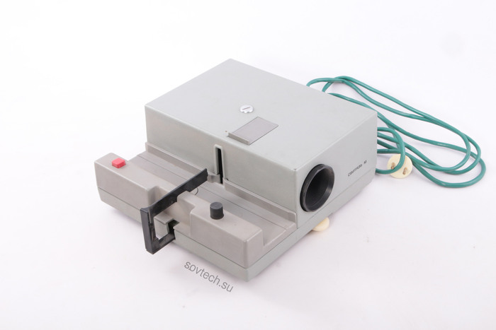 Диапроектор предназначен демонстрировать слайды - нарезанный кадр из пленки в пластиковой рамочке. Проектор полуавтоматический - при нажатии кнопки слайд сменяется автоматически.