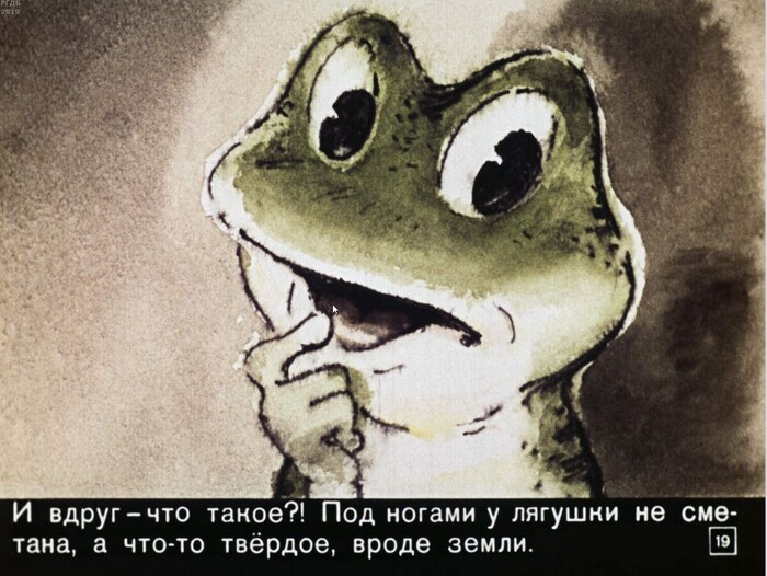 Ну, вы помните. Гуляли в погребе, упали в кувшин со сметаной, никогда не сдавайся, все дела, работай лапками без устали, и вот уже сбитая в масло сметана.