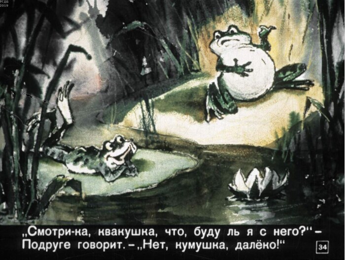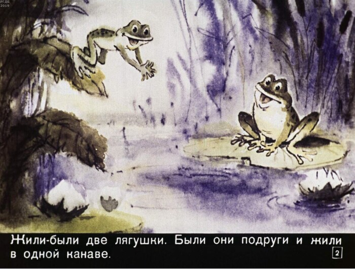 Для этого диафильма Борис Степанцев иллюстрировал только первую новеллу Алексея Ивановича Еремеева (как известно, именно это имя было записано в паспорте писателя Леонида Пантелеева) - про двух лягушек.