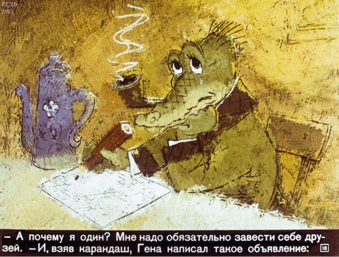 Ну и последняя на сегодня работа художника, которую я покажу вам - это "двухсерийный" диафильм "Крокодил Гена и его друзья".
