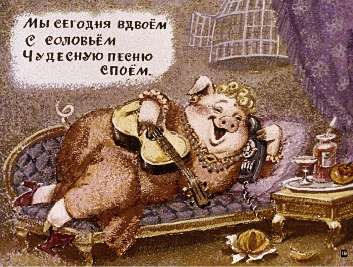 Иногда художникам удавалось заработать очень приличные деньги за короткий срок. К примеру, в 1968 году мультипликатор Борис Степанцев выпустил три диафильма - по басням Крылова, по стихотворению Елены Благининой "Тюлюлюй" и по сказке Бориса Заходера "Хрюк на елке" - кадры из них и иллюстрируют этот текст.