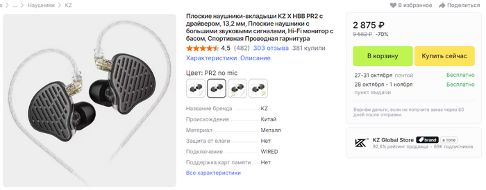 Кстати о наушниках, и так "наушники 1" это KZ PR2