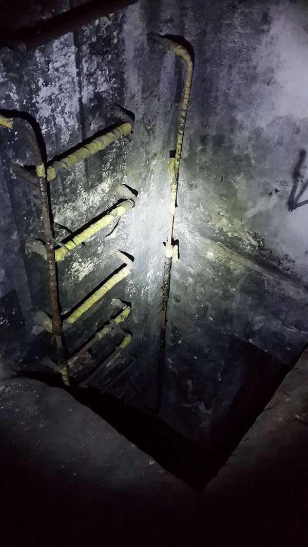 Так вот, пришли мы к вентшахтам. Залаз был максимально сложный. Приходилось держаться за арматуру и упераясь ногами в стену , постепенно опускаться вниз и пролезть всем телом через узкий проход. Когда мы были уже там , воняла гарью, резиной и тяжело дышалось.