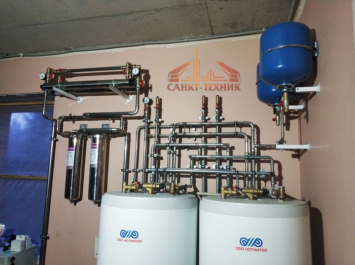 Мужчина Васенин А., как всегда, продуманно подошел к выполнению поставленной задачи и не просто соединил тройниками бойлеры по загрузке теплоносителем и воде, а все уравновесил с помощью правила петель Тихельмана, чтобы оба бойлера оказались в АБСОЛЮТНО одинаковых условиях по гидравлике.