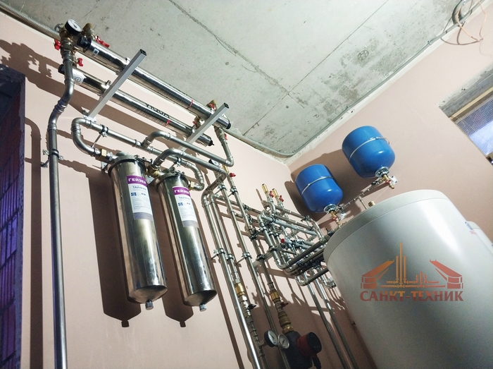 Олег, как всегда, красавец по исполнению, но косячок в виде отсутствия сливного крана на гидро-аккумуляторе я нашел). Этот "моментик" наш мсье будет устранять при установке радиаторов😁.