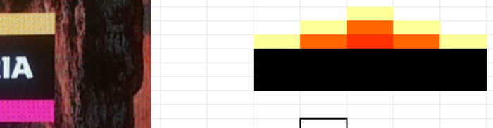 Берем наиболее качественную из имеющихся, вставляем в MS Excel, подмечаем удивительную особенность: стандартная ширина и высота ячеек! Осталось лишь подобрать цветовую гамму.