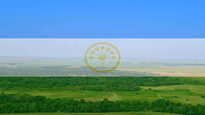 Использована цветовая гамма флага региона (сине-бело-зеленый триколор с цветком курая желтого цвета). Желтый стал чуть более оранжевый, дабы совсем не слиться с белым фоном.