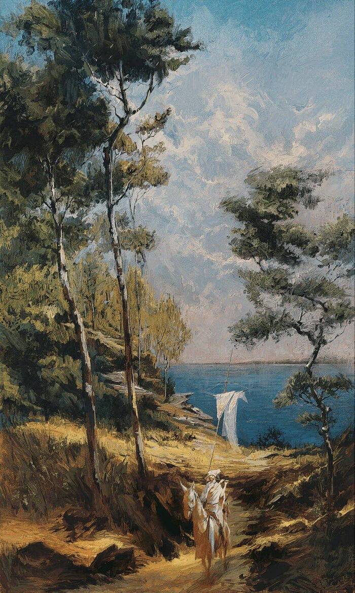 Мастер-спальня оформлена в восточном ключе: арочный мараканский проём ведёт в гардеробную, а стены украшены декоративной фреской и латунными светильниками. Над кроватью — балдахин и тёплый текстиль терракотового оттенка, создающий камерное и почти ритуальное настроение. Потолочные балки из дерева и текстурные стены перекликаются со стилем остальных помещений, но при этом сохраняют чувство приватности.