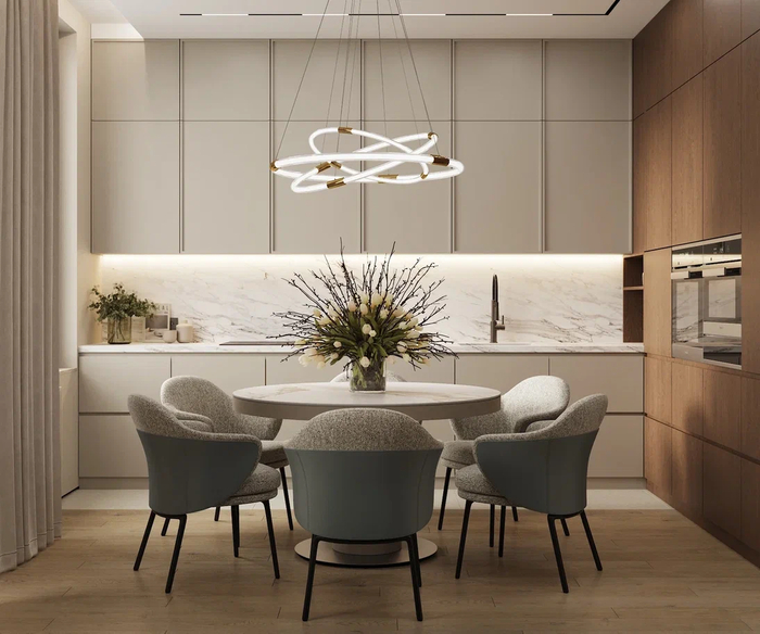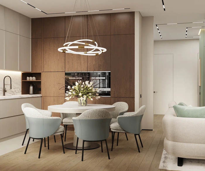 Для оформления открытых пространств важно четко разграничивать зоны — обозначьте, где размещена кухня, а где начинается зона для отдыха. Такой прием помогает нейросети правильно распределить мебельные группы при создании 3d визуализации интерьера.