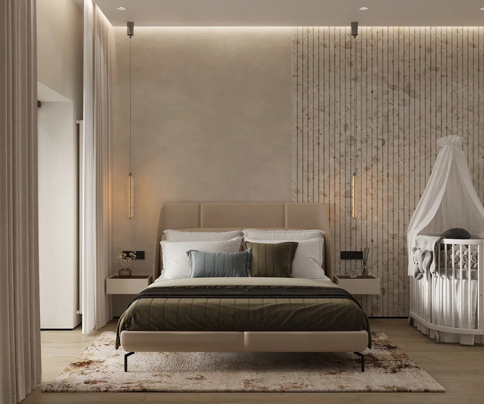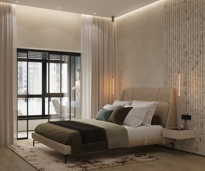 В спальне не стоит перебарщивать с индустриальными элементами: используйте больше текстиля, расставьте мягкое освещение и подберите теплую гамму. Такой подход спасает от эффекта холодного склада и создает настоящее ощущение уюта для спокойного сна.