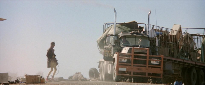 Действие происходит в пустынной местности, где без тачки, бенза и воды не выжить. Вначале каких-то ребят пытаются развести, чтобы, играя на жалости, просьбах о помощи отобрать у них тачку, но им вроде удается отбиться от непреятелей и они договорились впредь не остановливаться.