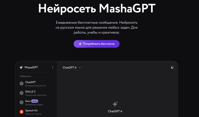 MashaGPT — российский сервис с ChatGPT, Claude, Gemini и удобным русскоязычным интерфейсом и телеграм-ботом.