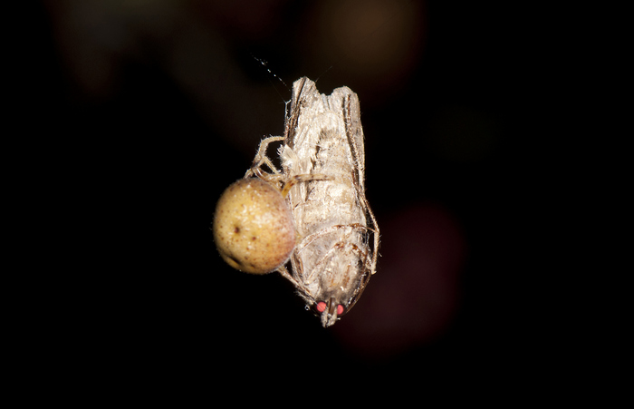 Пауки-арканщики не плетут обычную паутину-шар. Вместо этого они охотятся с помощью боласа - шёлковой нити с одной или несколькими липкими каплями на конце. Паук обладает хорошим зрением, но при ночной ловле добычи ориентируется главным образом на слух и осязание. Звук летящего мотылька стимулирует самку размахивать своим лассо.