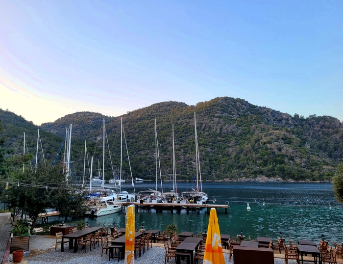 Такие уединенные бухты – далеко не редкость в этом регионе. Практически в каждой из них есть ресторан, в инфраструктуру которого его владельцы вложили огромное количество сил и денег. Они обустроили причалы, муринги, террасы и санитарные сооружения, сделав путешествие вдоль турецкого побережья довольно комфортабельным и вкусным. За стоянку у причала здесь денег не берут, но ожидается, что вечером команда придет в ресторан на ужин.