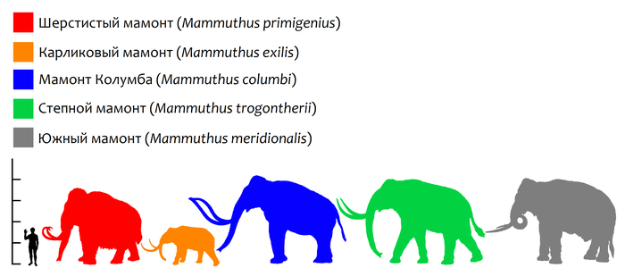 Так, от южного мамонта произошёл степной мамонт, который уже был покрыт шерстью и выдерживал более низкие температуры. От степного мамонта произошёл мамонт Колумба, императорский и хазарский мамонты. Последний был переходной формой ко всем известному шерстистому мамонту. Так, по-видимому, лысый африканский дед постепенно эволюционировал в морозостойкого и волосатого.